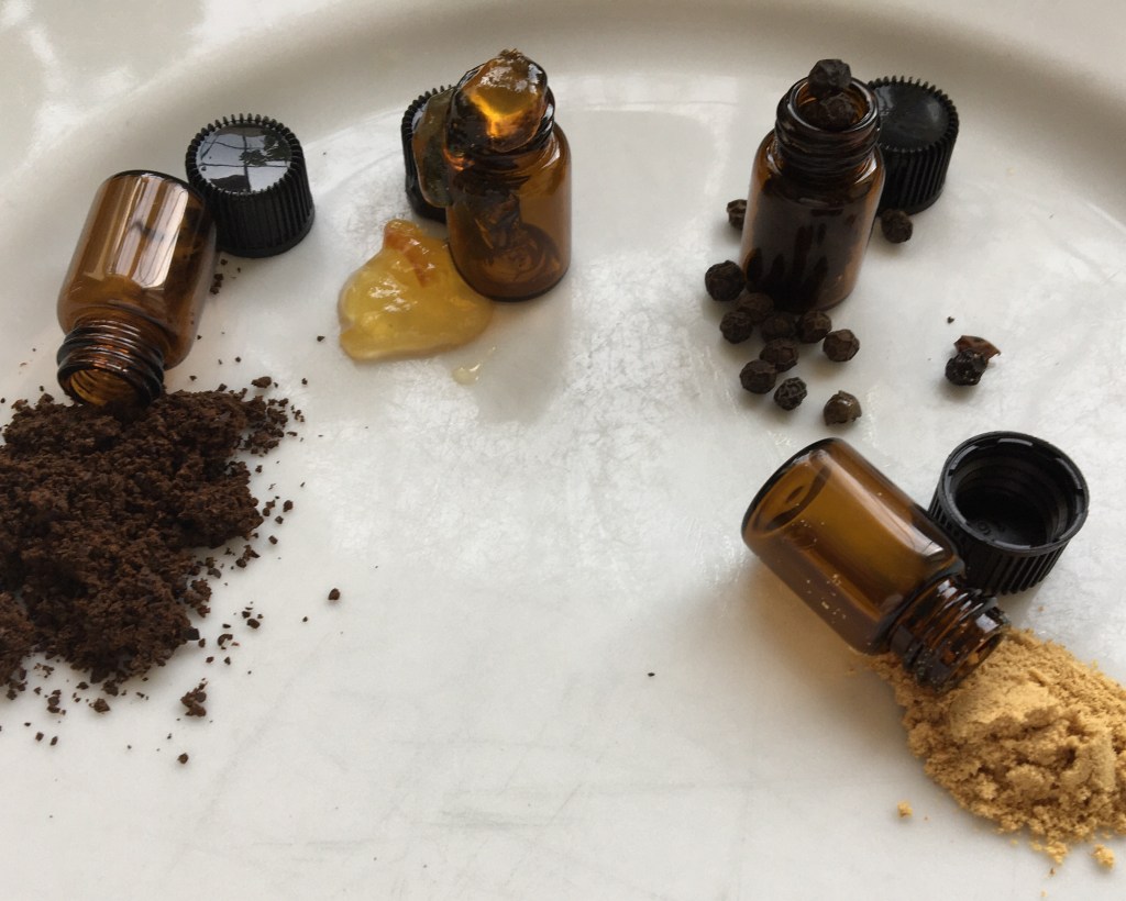 So how to begin… choose four different aromas. I chose ground coffee, ground ginger, marmalade and black pepper corns and put them into air tight containers. These are strong aromas that are good to begin nose training. See above photo. Then breathe naturally and hold one of the bottles to your nose as you breathe. It doesn’t need to be there longer than 10 seconds. As you breathe focus on what you can smell and any associations that come to mind. You might want to write down your thoughts into a diary to track your progress. Perhaps drink some water to clear your palate and then take the next aroma. Do the same again but also compare the strength of this aroma with the previous one. Continue in the same way with the rest of them. If you can’t smell anything write that down in your diary. Still continue to hold the aroma to your nose anyway.